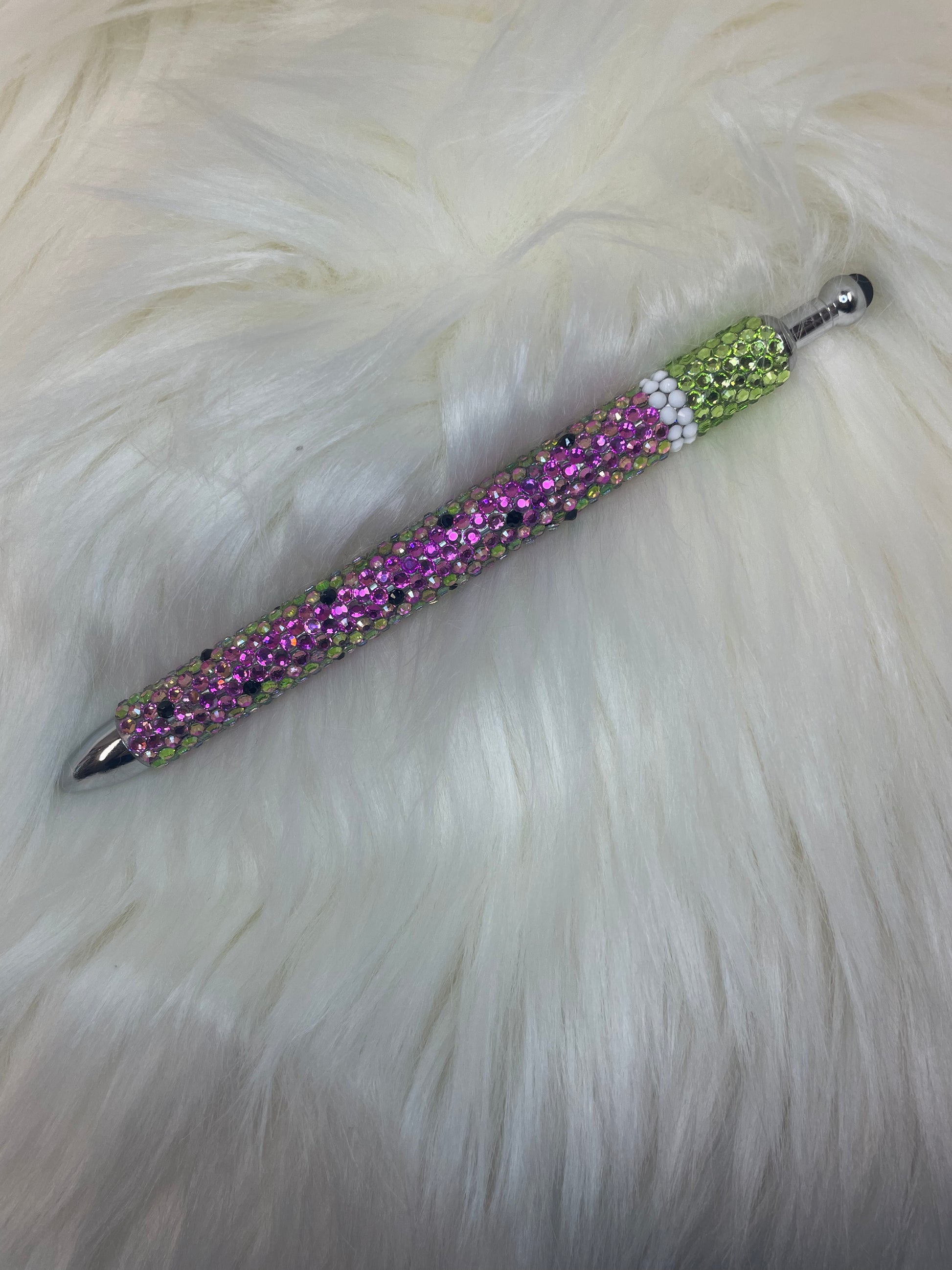 Blinged watermelon Pen, all glass rhinestones. Each placed one by one